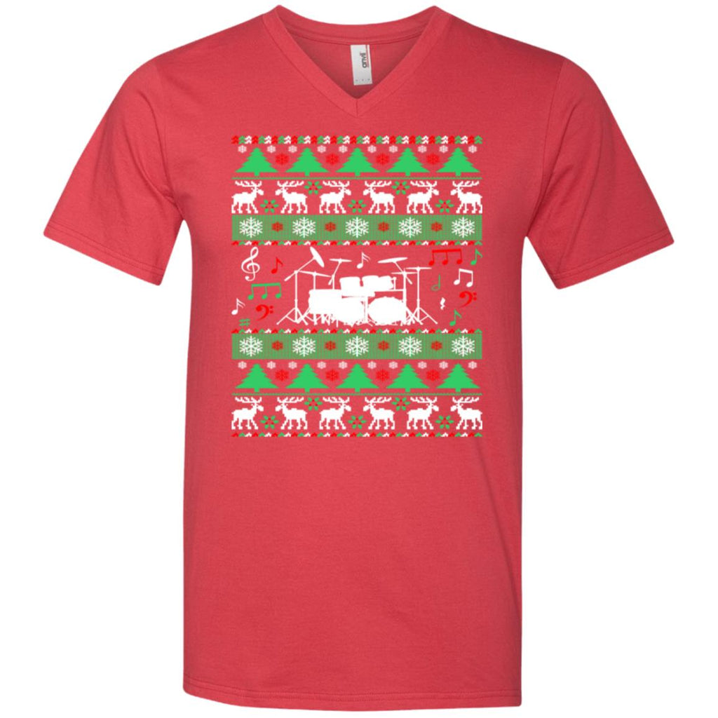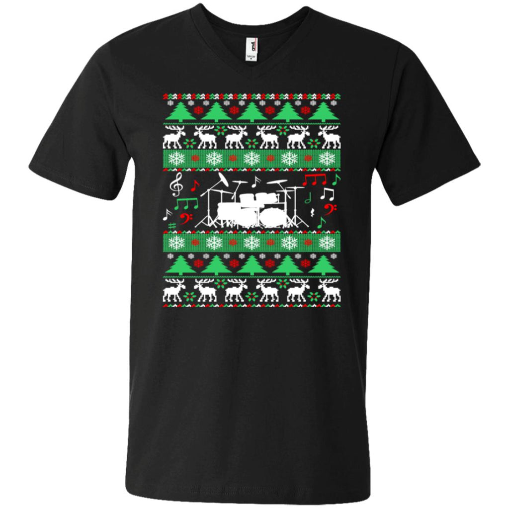 * Drums Drummer Ugly Christmas Men V-Neck T-Shirt :