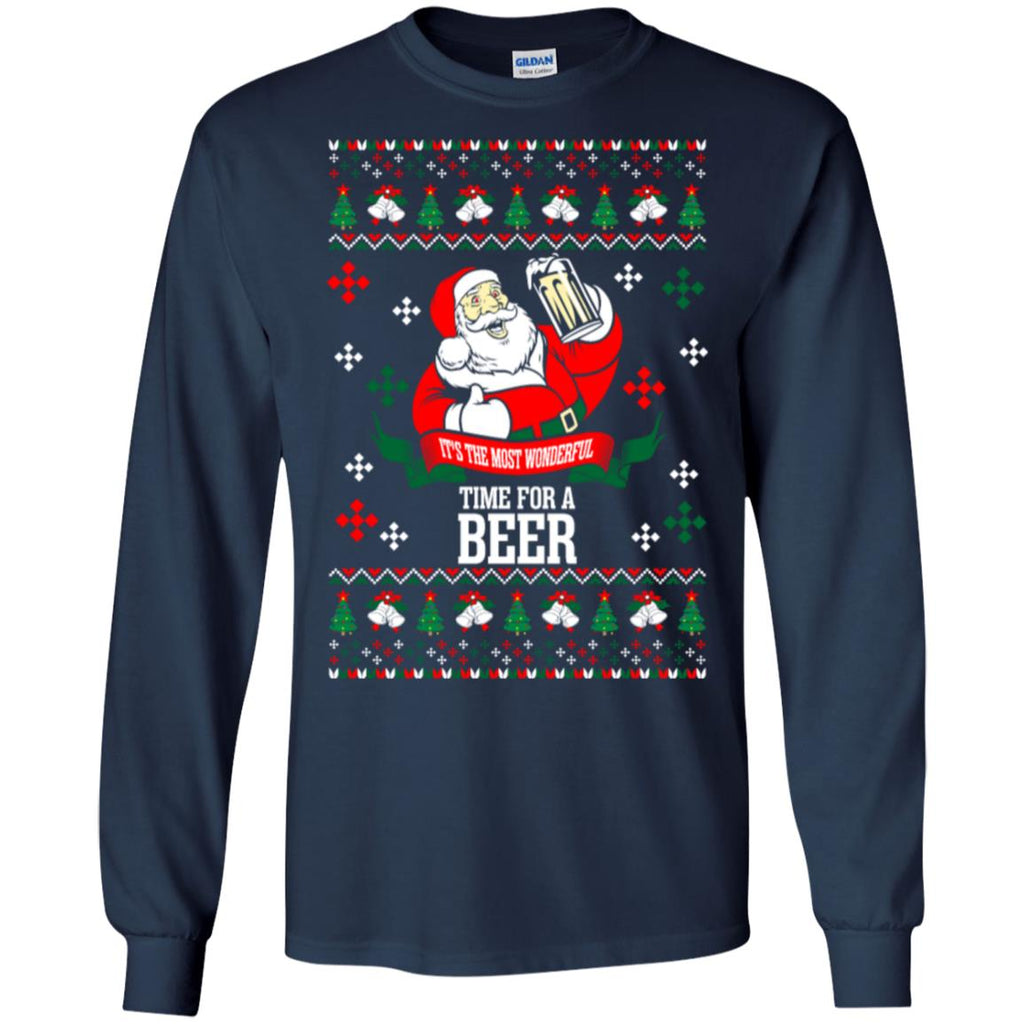 It's The Most Wonderful Time For A Beer Ugly Christmas Men Long SLeeve Shirt