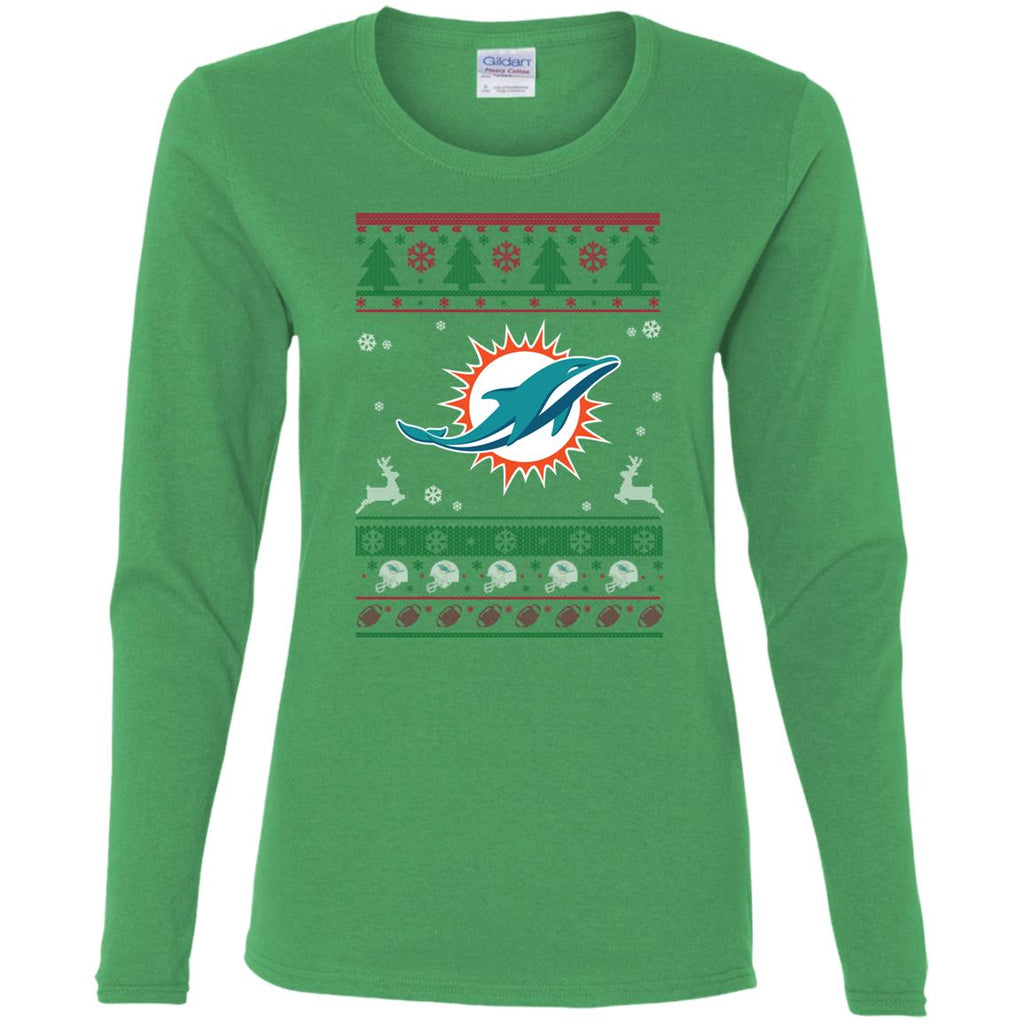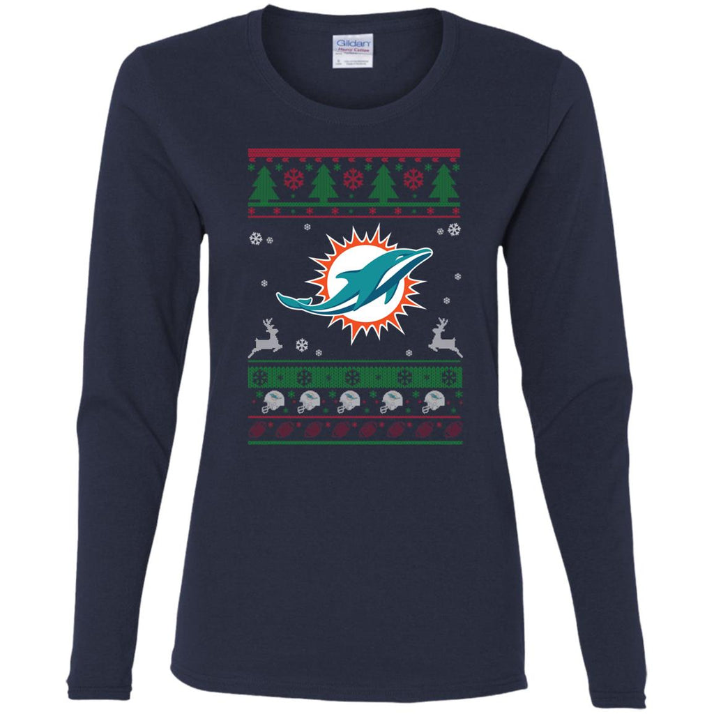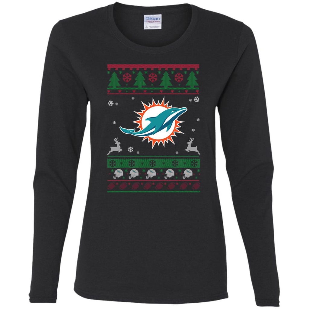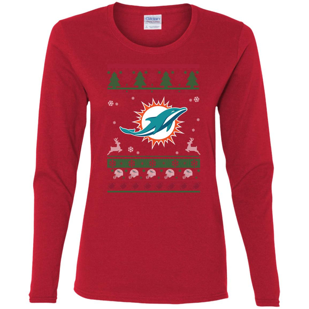 * Miami Dolphins Logo Football Teams Ugly Christmas Sweater Women Long Sleeve Shirt :
