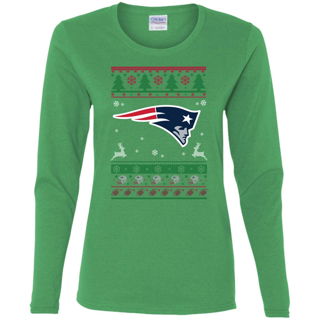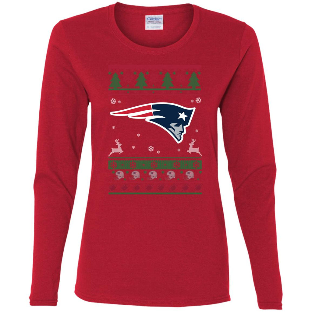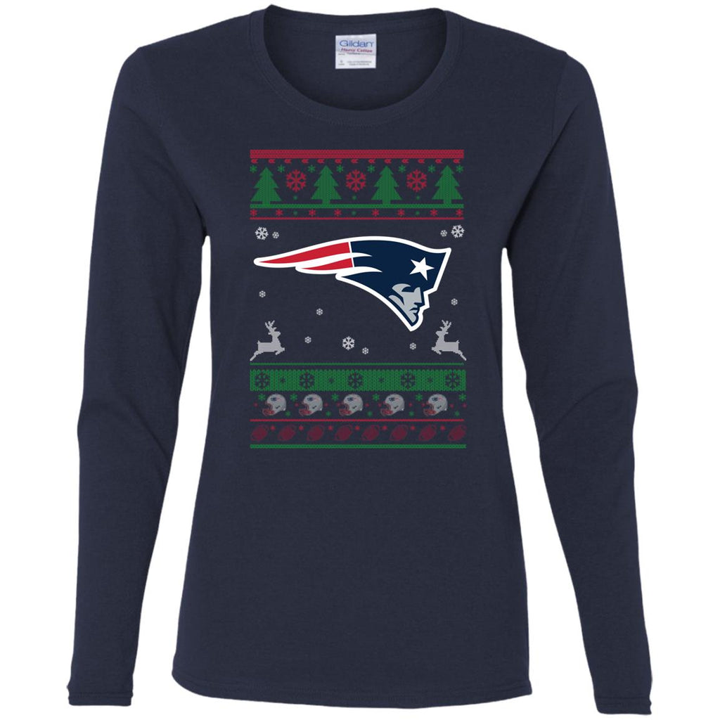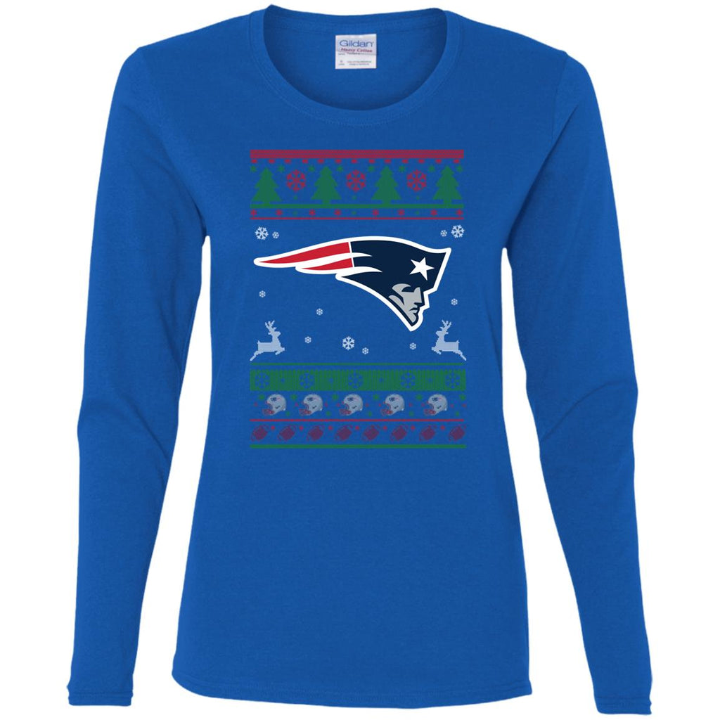 * New England Patriots Logo Football Teams Ugly Christmas Sweater Women Long Sleeve Shirt :