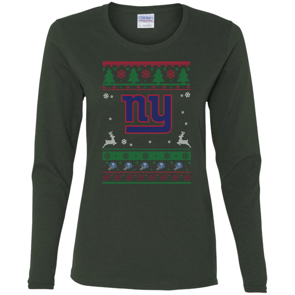 * New York Giants Logo Football Teams Ugly Christmas Sweater Women Long Sleeve Shirt :