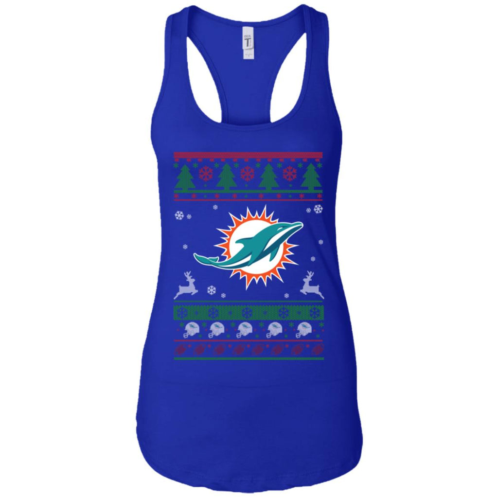 * Miami Dolphins Logo Football Teams Ugly Christmas Sweater Women Tank :