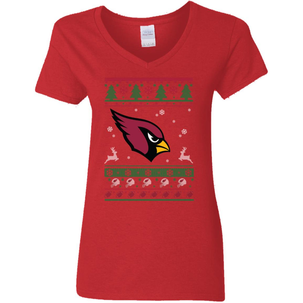 Arizona Cardinals Logo Football Teams Ugly Christmas Sweater Women V-Neck T-Shirt