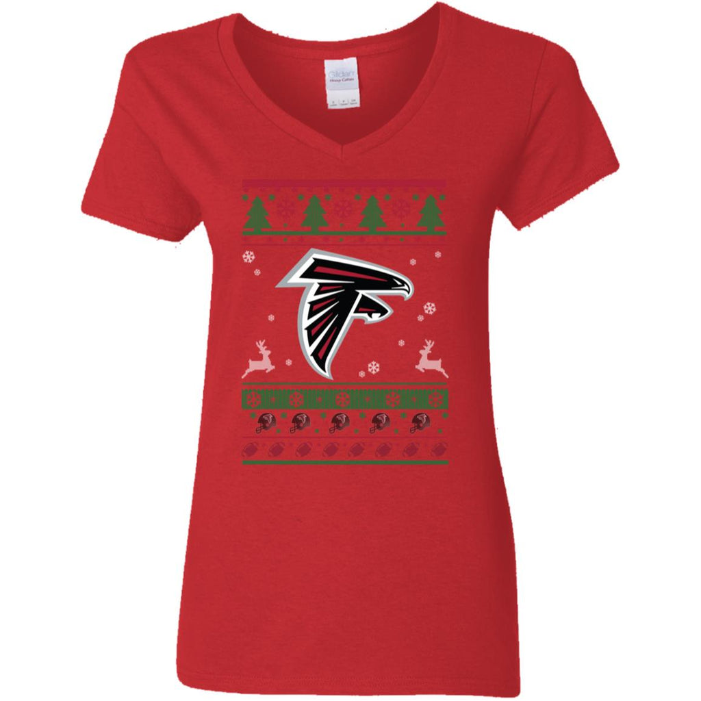 * Atlanta Falcons Logo Football Teams Ugly Christmas Sweater Women V-Neck T-Shirt :