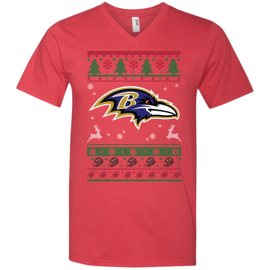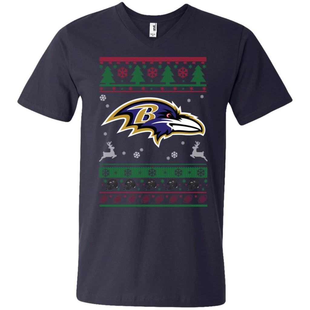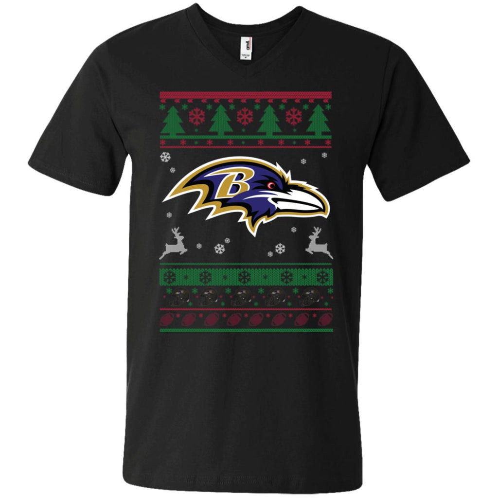 * Baltimore Ravens Logo Football Teams Ugly Christmas Sweater Men V-Neck T-Shirt :