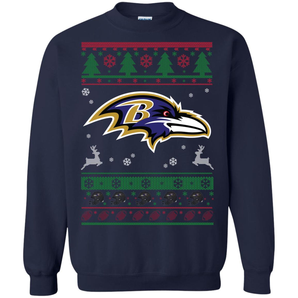 * Baltimore Ravens Logo Football Teams Ugly Christmas Sweater Unisex Crewneck Pullover Sweatshirt :