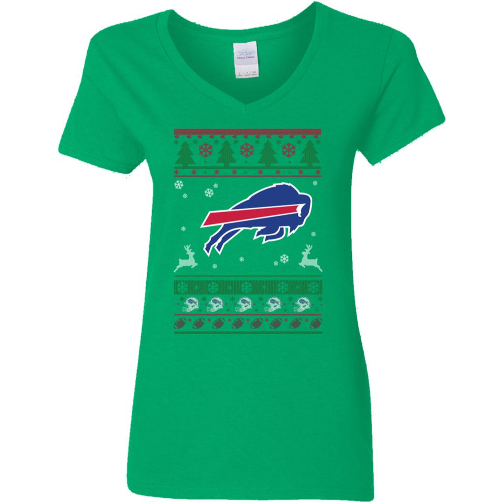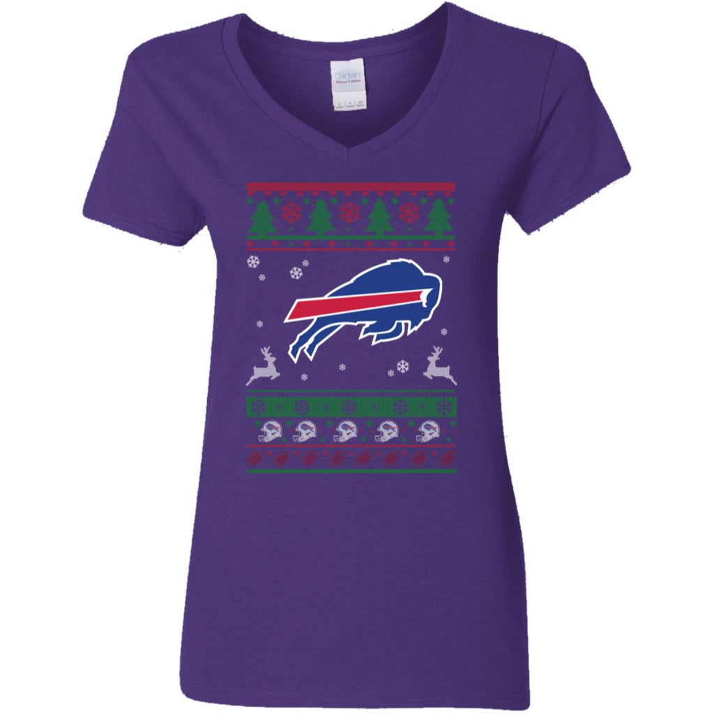 * Buffalo Bills Logo Football Teams Ugly Christmas Sweater Women V-Neck T-Shirt :
