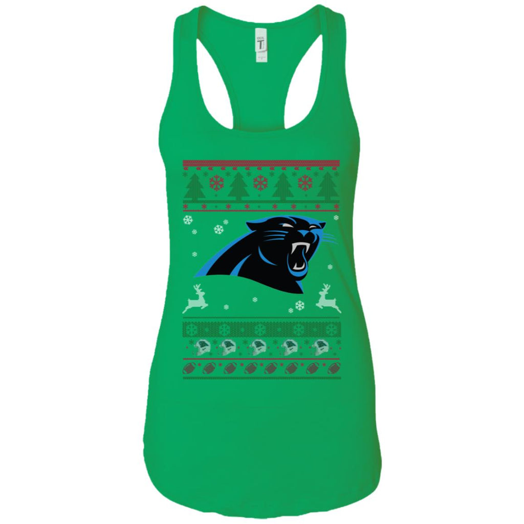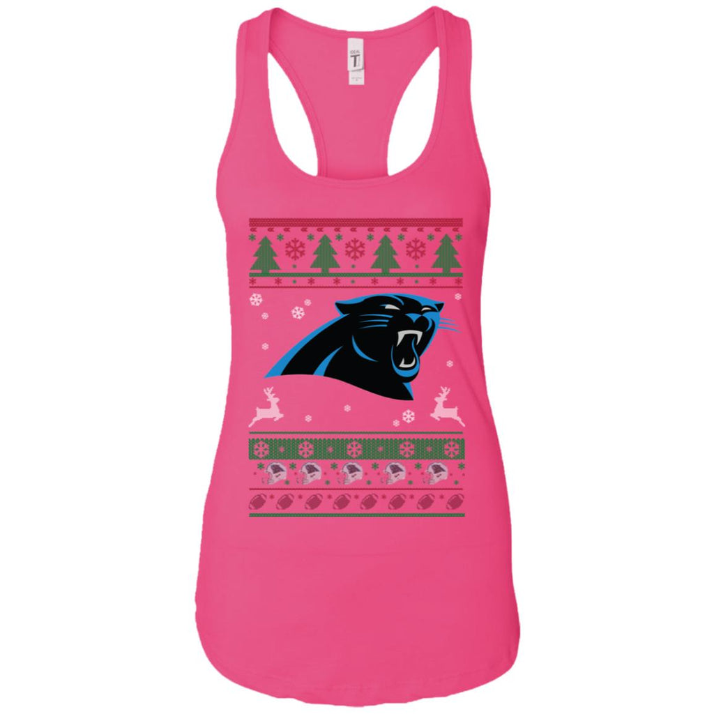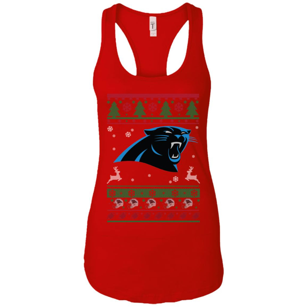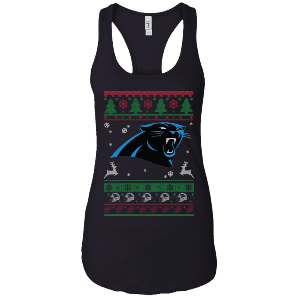 * Carolina Panthers Logo Football Teams Ugly Christmas Sweater Women Tank :