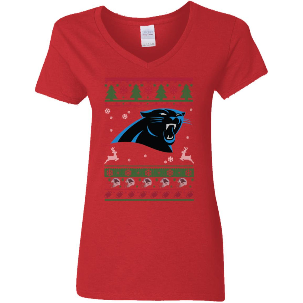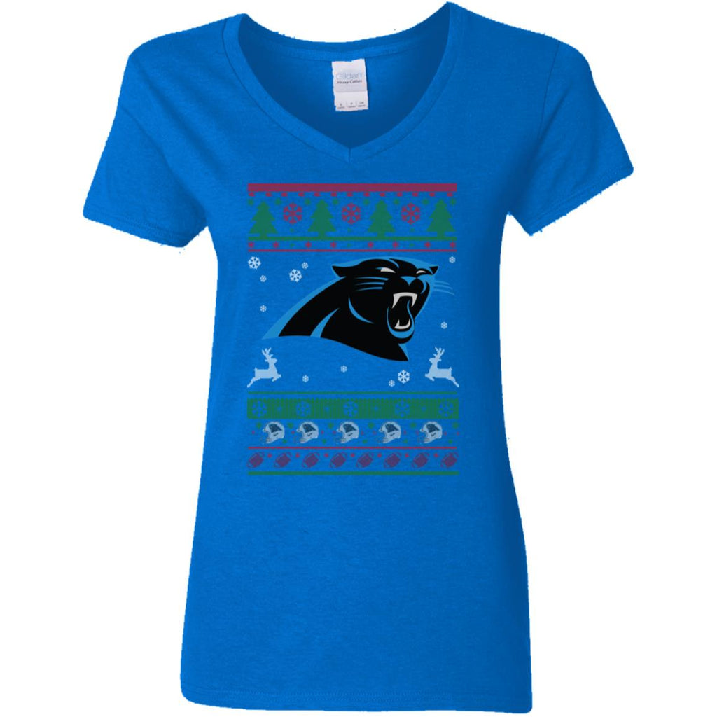 Carolina Panthers Logo Football Teams Ugly Christmas Sweater Women V-Neck T-Shirt
