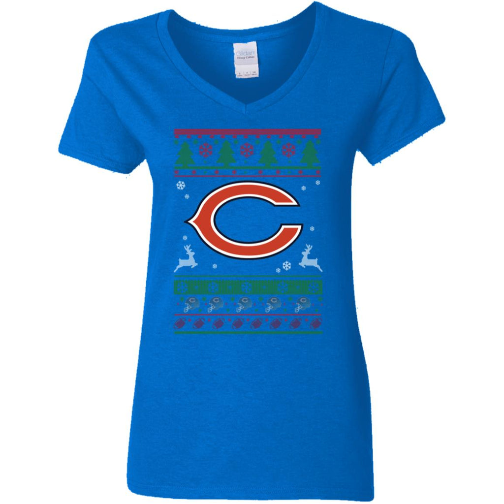 * Chicago Bears Logo Football Teams Ugly Christmas Sweater Women V-Neck T-Shirt :