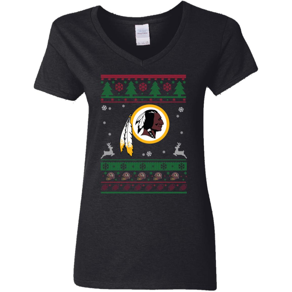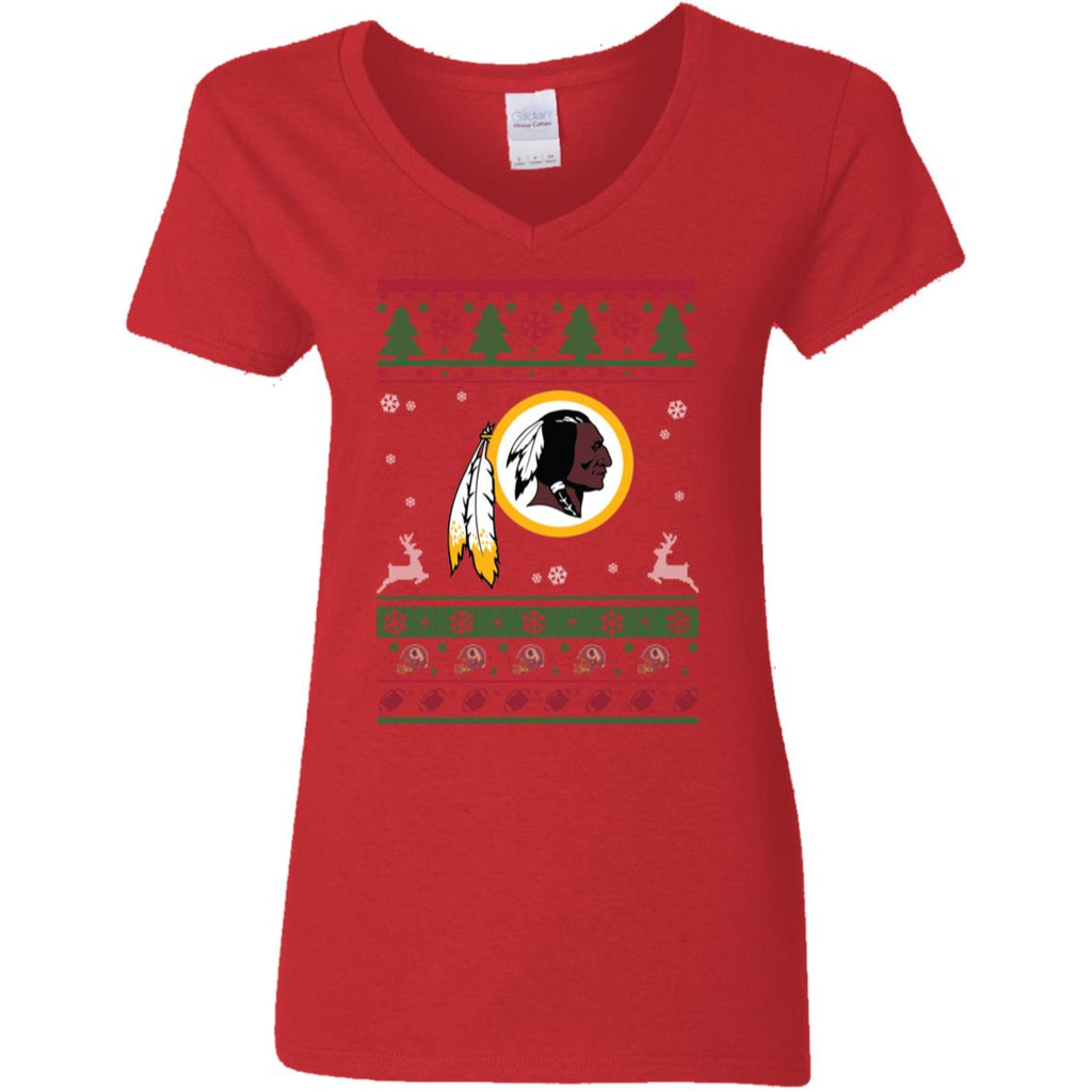 * Washington Redskins Logo Football Teams Ugly Christmas Sweater Women V-Neck T-Shirt :